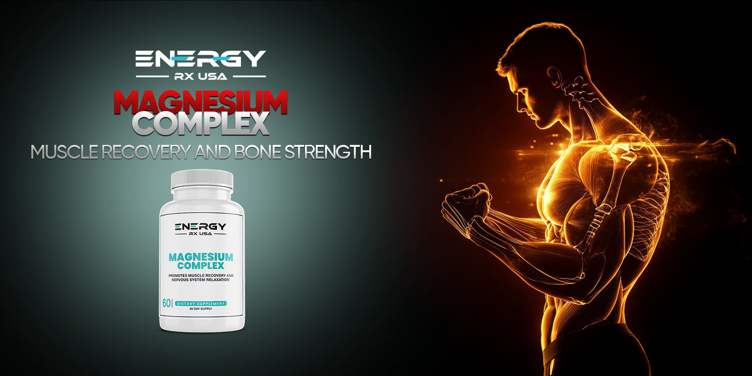 Energy RX USA Magnesium Complex is formulated to support optimal muscle recovery and bone strength, promoting relaxation and overall well-being after physical activity.